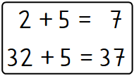 Wenn du die Aufgabe 32+5 am Zahlenstrahl verfolgst, dann kannst du ablesen, dass das Ergebnis 37 ist. Und hier fällt dir etwas Schönes auf: Dieses Addieren geht genau so, wie du es schon im Zahlenbereich bis 20 gelernt hast.